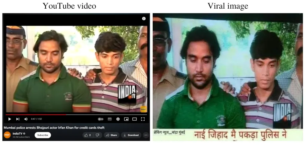 2013 ജൂലൈയിൽ ഇന്ത്യ ടി.വി നൽകിയ വാർത്തയിൽ നിന്നുള്ളതാണ് പ്രസ്തുത ചിത്രം എന്ന് കാണാം. ‘ക്രെഡിറ്റ് കാർഡ് മോഷണത്തെ തുടർന്ന് ഒരു ഭോജ്പുരി നടനെ മുംബൈ പൊലീസ് അറസ്റ്റ് ചെയ്തു’ എന്ന തലക്കെട്ടോടെയാണ് ആ വാർത്ത പ്രസിദ്ധികരിച്ചിട്ടുള്ളത്.