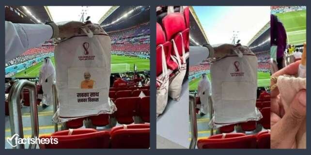 2022 ലോകകപ്പ് കാണാനായി ഖത്തറിലേക്ക് വരുന്ന കാണികൾക്ക് നൽകിയ കിറ്റിൽ, ഇന്ത്യൻ പ്രധാനമന്ത്രി നരേന്ദ്രമോദിയുടെ ചിത്രം ഉള്ളതായി പ്രചരിപ്പിക്കപ്പെട്ടിരുന്നു. മൈനോറിറ്റി മോക്ഷ മുംബൈ പ്രസിഡന്റ് വസീം ആർ ഖാനായിരുന്നു മോദിയുടെ ചിത്രമുള്ള ലോകകപ്പ് കിറ്റ് 'മേരാ പി.എം, മേരാ അഭിമാൻ' എന്ന തലക്കെട്ടോടെ ട്വിറ്ററിൽ പങ്കുവച്ചത്. വസ്തുത ഫിഫ ലോകകപ്പിൽ പങ്കെടുക്കുന്ന ആർക്കും തന്നെ അവരുടെ രാജ്യങ്ങളുടെ പ്രധാനമന്ത്രിയുടേതോ മറ്റോ ചിത്രങ്ങൾ ഉൾപ്പെടുന്ന കിറ്റ് നൽകുന്നില്ല. വസീം ഖാൻ ട്വീറ്റ് ചെയ്ത ചിത്രത്തിലെ ബാഗ് ലോകകപ്പ് ഉദ്ഘാടന…